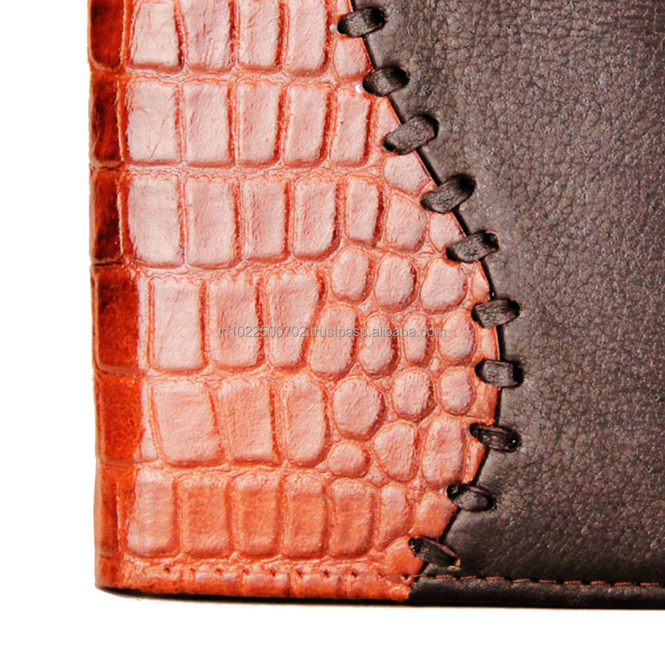 กระเป๋าสตางค์หนังจระเข้แบบยาวสำหรับผู้ชายกระเป๋าสตางค์แบบสองพับมีช่องใส่บัตรคุณสมบัติ RFID กระเป๋าด้านหน้าออกแบบโลโก้ได้ตามต้องการ