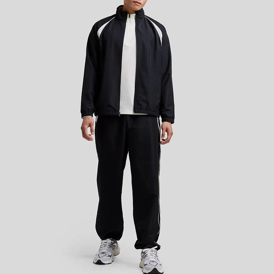ชุดวอร์มผ้าโพลีเอสเตอร์สำหรับผู้ชายชุดวิ่งออกกำลังกายผ้าโพลีเอสเตอร์แบบเข้ารูปสำหรับผู้ชายโลโก้ตามสั่ง