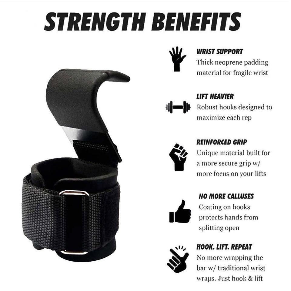 ตะขอเหล็กยกน้ำหนักโลโก้สั่งทำพิเศษ พร้อมที่จับเพิ่มแรง สายรัดข้อมือป้องกันการบาดเจ็บสำหรับออกกำลังกาย ปรับปรุงใหม่