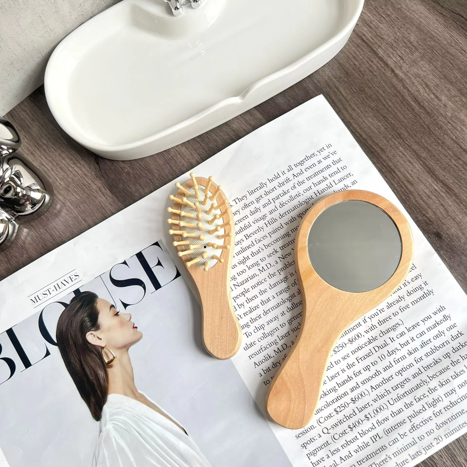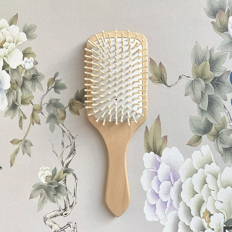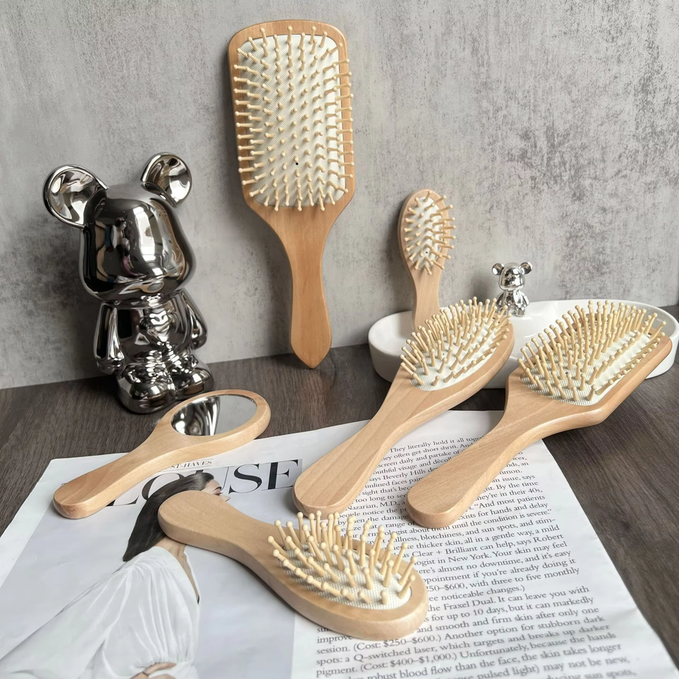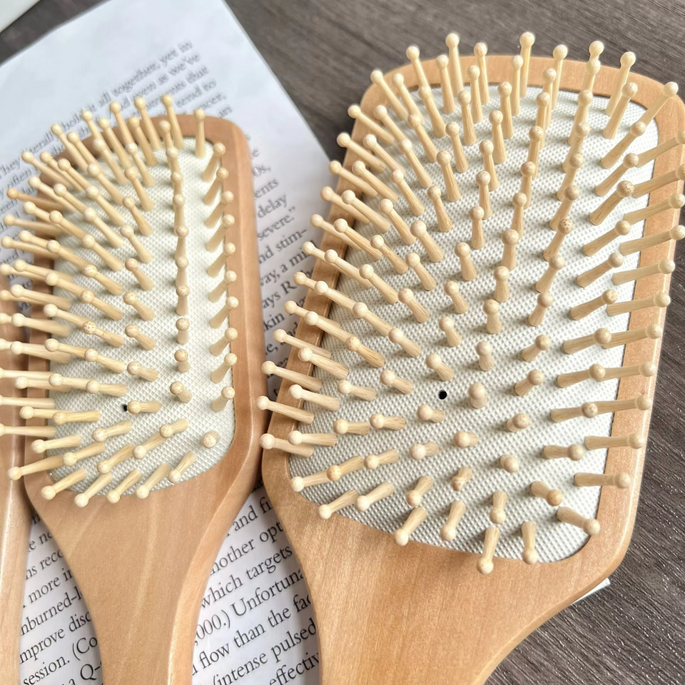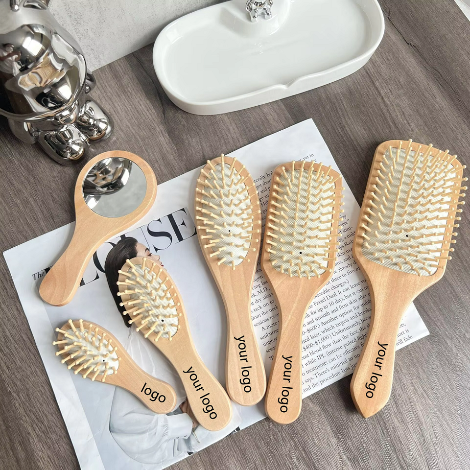 หวีไม้ไผ่ขนาดเล็กพร้อมเบาะแปรงหวีผมหวีนวดหนังศีรษะสำหรับผมทุกประเภทโลโก้ออกแบบได้ตามต้องการ