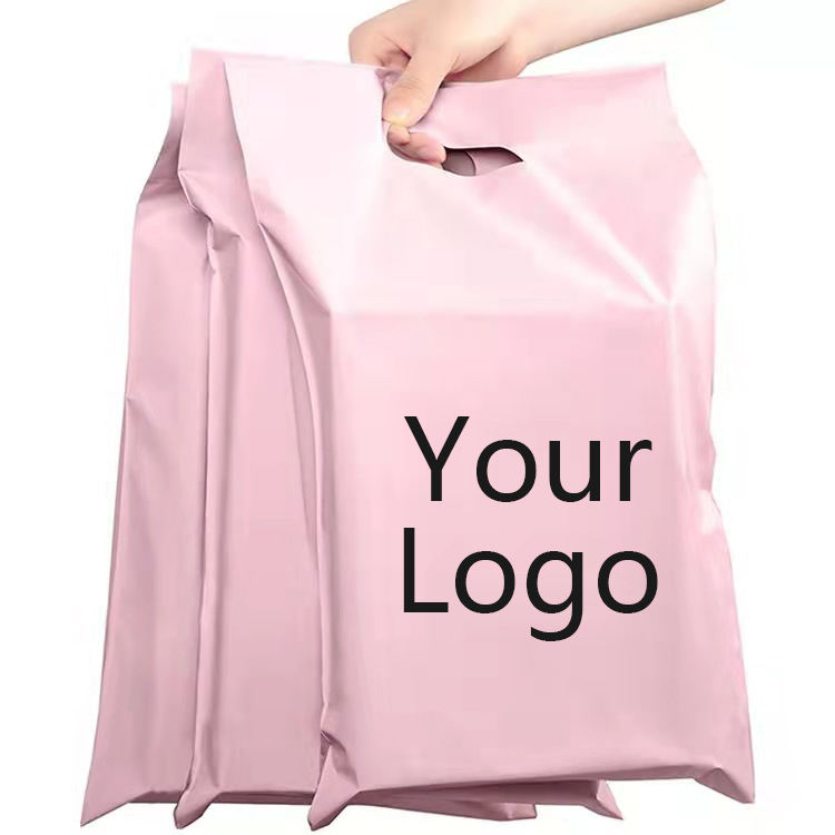 ถุงพลาสติกส่งของแบบมีหูหิ้ว สีชมพู สำหรับส่งด่วน กันน้ำ พิมพ์โลโก้ได้ตามต้องการ ดีไซน์มินิมอล เหมาะสำหรับเสื้อผ้า