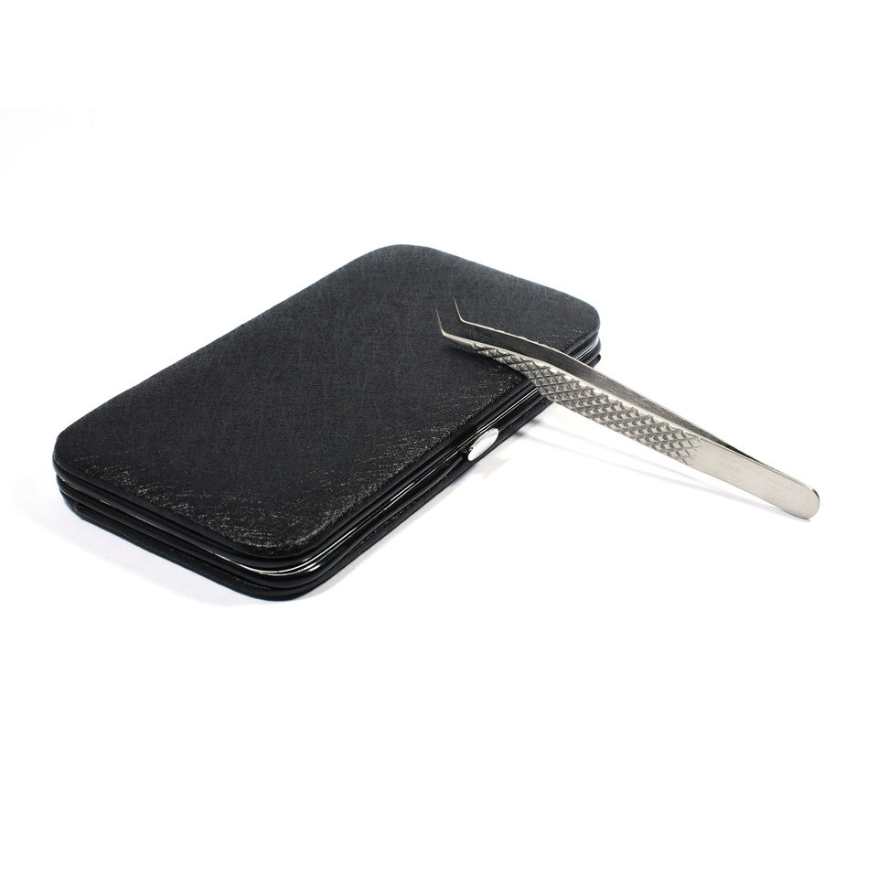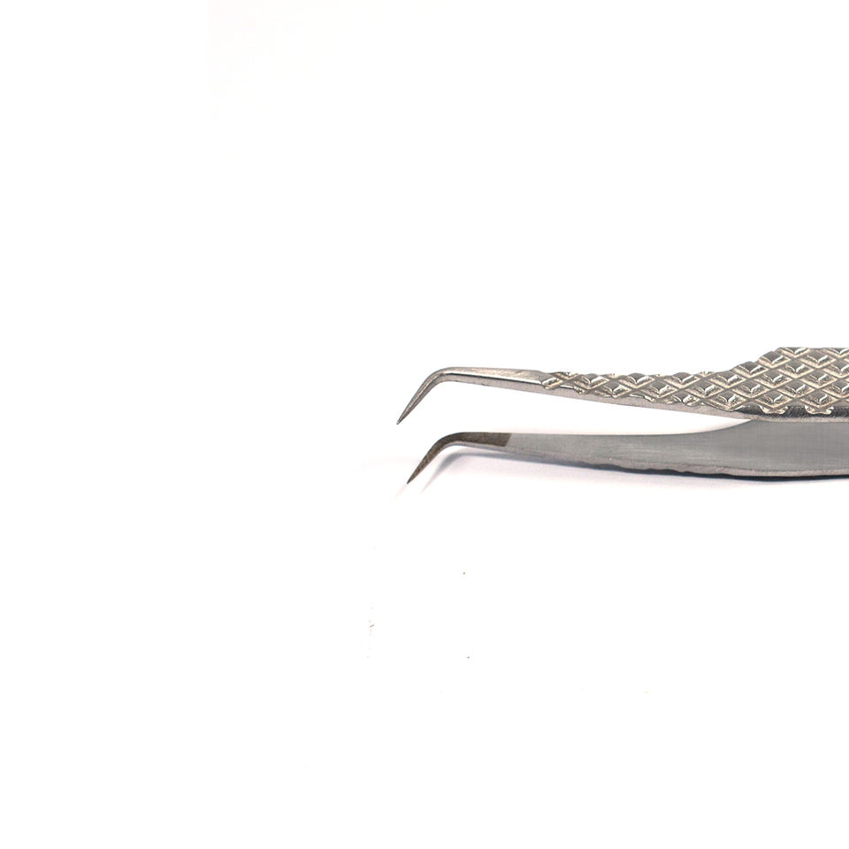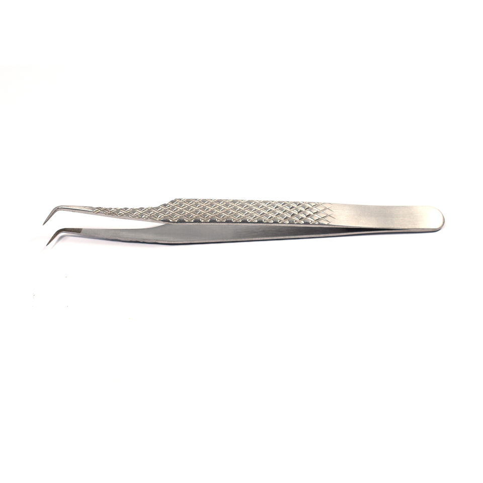 แหนบต่อขนตาปลายแหลม สแตนเลสสตีลขัดเงา รูปทรงโค้งครึ่งวงกลม โลโก้สั่งทำได้ แบรนด์ส่วนตัว ขนาด 12 ซม.