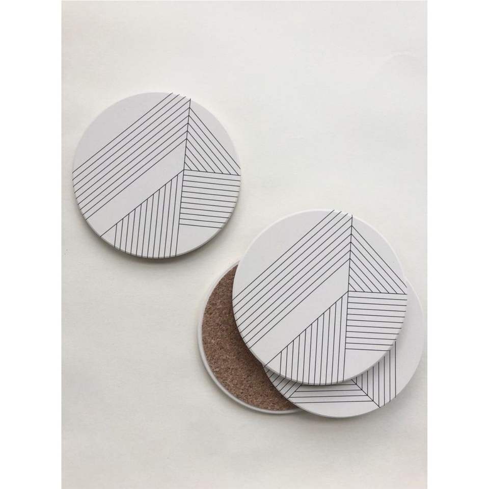 แผ่นรองแก้วลายโลโก้ศิลปะสมัยใหม่ ขายส่ง วัสดุไม้ดูดซับน้ำ ด้านหลังเป็นไม้ก๊อก ป้องกันรอยขีดข่วน ป้องกันพื้นผิวโต๊ะและเคาน์เตอร์