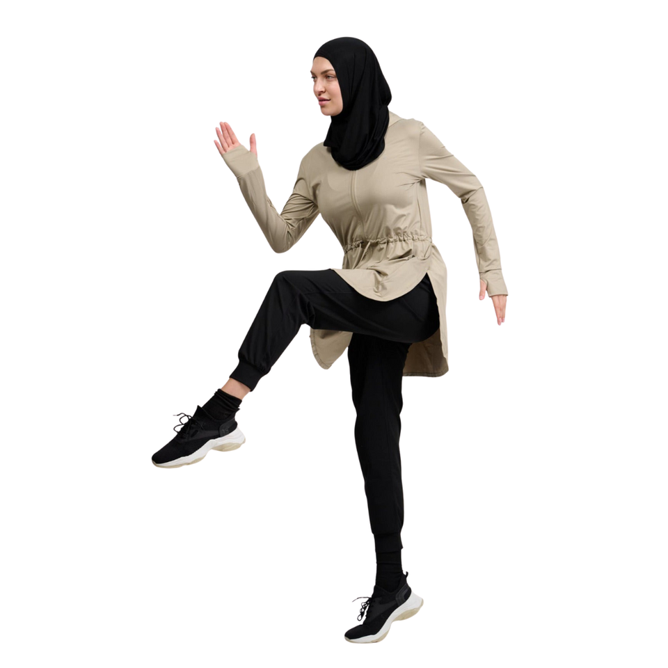 ชุดวอร์มออกกำลังกายผู้หญิงแบบเรียบง่ายพร้อมโลโก้สั่งทำ เนื้อผ้าระบายอากาศ น้ำหนักเบา แห้งเร็ว ผลิตจากโพลีเอสเตอร์/คอตตอน แขนยาว ทรงปกติ