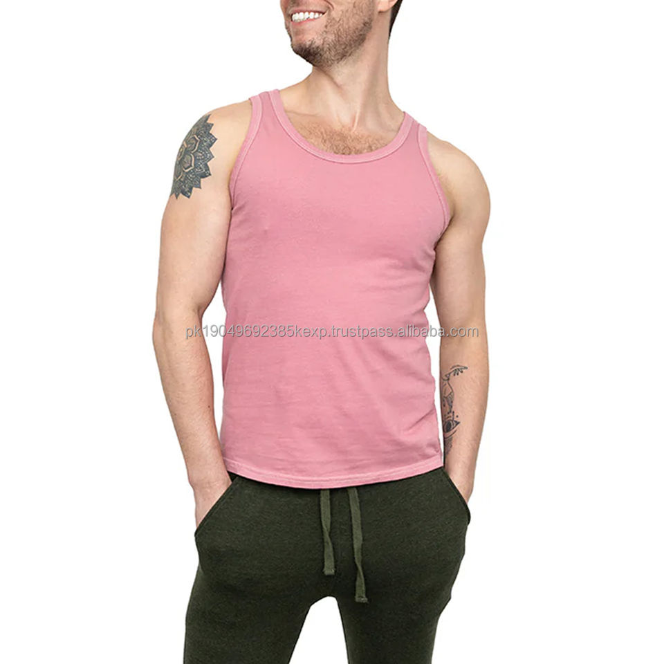 เสื้อกล้ามออกกำลังกายผ้าฝ้ายทรงเข้ารูปพิมพ์โลโก้ตามสั่ง ขายส่งสำหรับผู้ชาย พร้อมบริการ OEM
