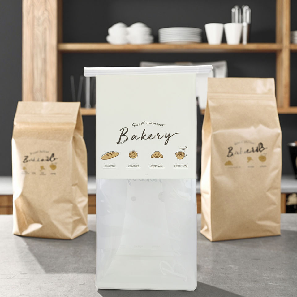 ถุงไมลาร์กระดาษคราฟท์หน้าต่างใสกันคราบไขมันสำหรับขนมปังโลโก้ออกแบบได้ตามต้องการ