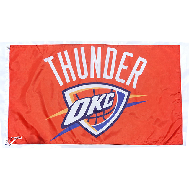 ธงโพลีเอสเตอร์ทีมบาสเกตบอล NBA โอคลาโฮมา ซิตี้ ธันเดอร์ พร้อมโลโก้แบบกำหนดเอง สำหรับงานปาร์ตี้ ตกแต่งภายใน/ภายนอกอาคาร พร้อมประกัน