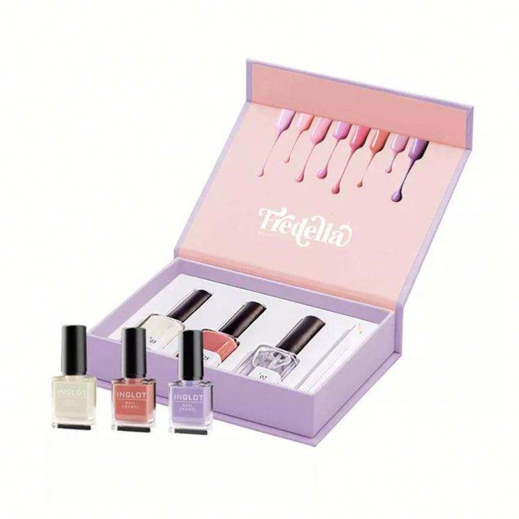 กล่องเก็บชุดน้ำยาทาเล็บโลโก้สั่งทำพิเศษ พร้อมเคลือบด้าน ลายนูน ซับในฟองน้ำ วัสดุแข็ง สำหรับบรรจุภัณฑ์เครื่องสำอาง