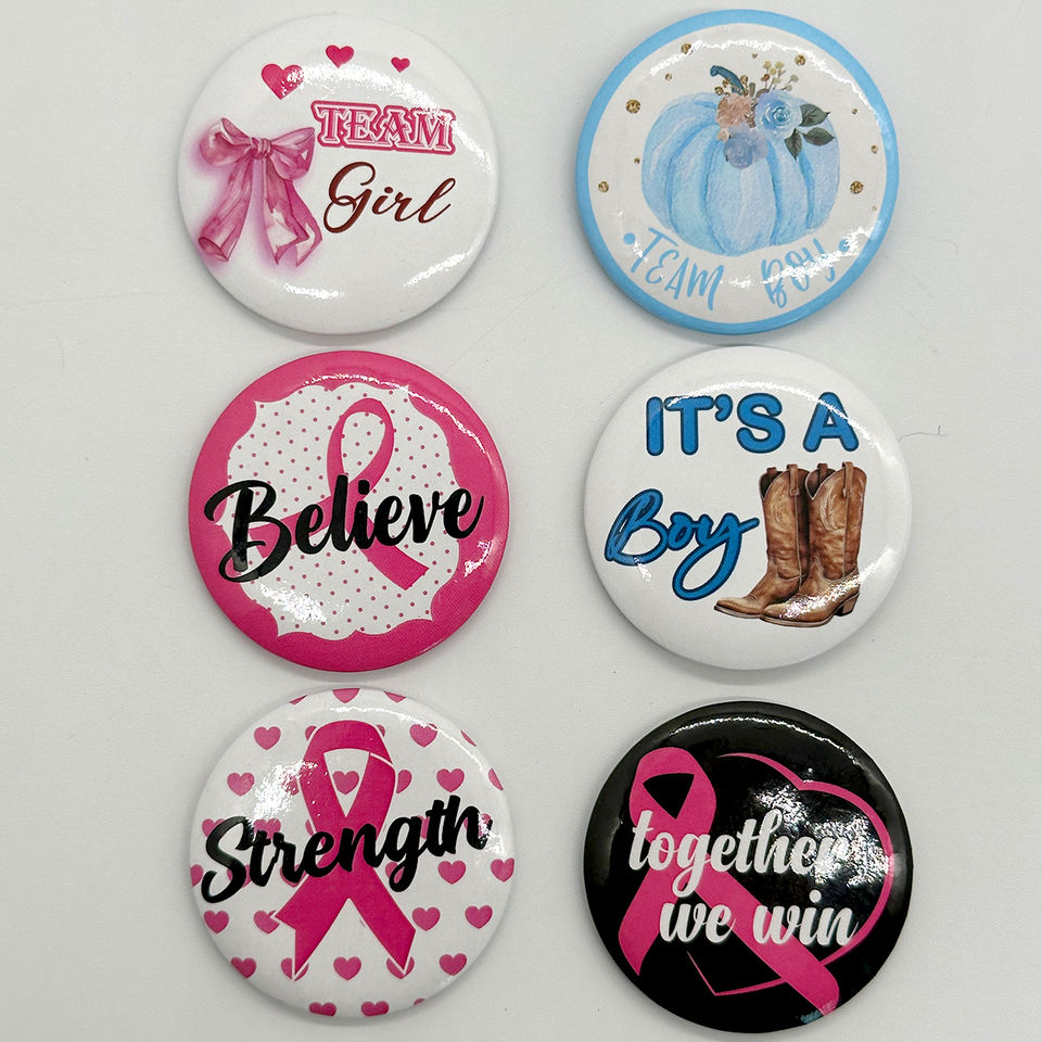 ป้ายชื่อโลโก้แบบกำหนดเอง พิมพ์ลายแบบระเหิด ขนาด 32 มม. 37 มม. 58 มม. ป้ายเข็มกลัดโลหะ