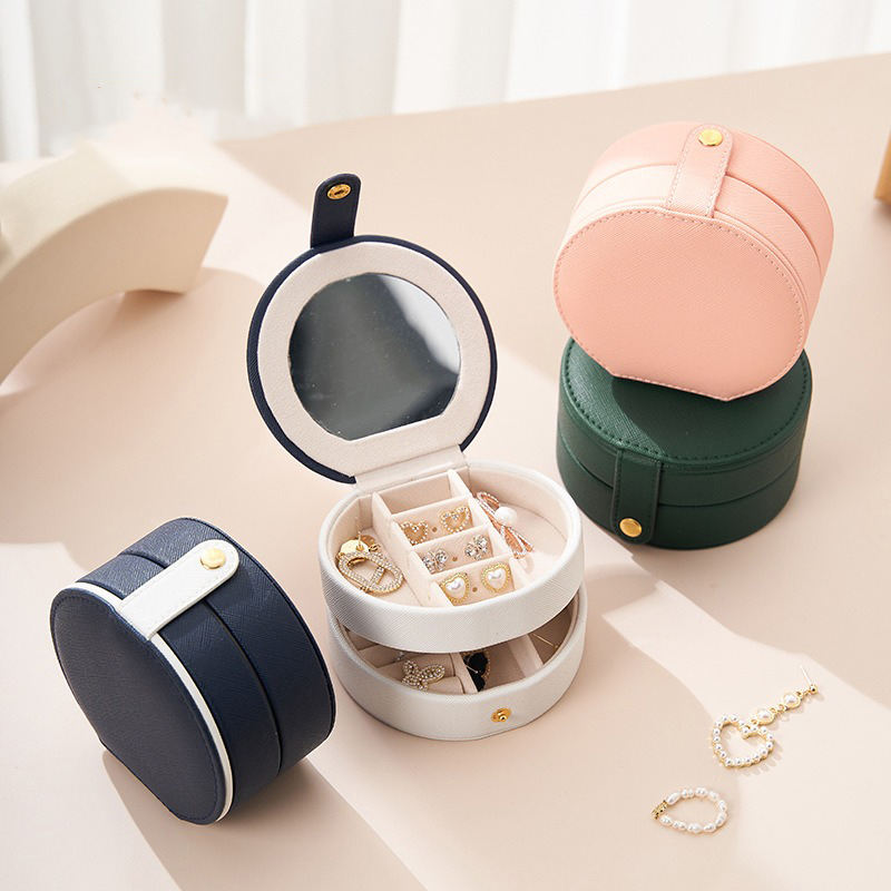 กล่องใส่เครื่องประดับสำหรับเดินทางแบบทำมือ รุ่นใหม่ล่าสุด พร้อมโลโก้สั่งทำได้ กระจกในตัว ปรับแต่งสีและขนาดได้ ผลิตจากหนัง PU ปิดด้วยกระดุม สำหรับผู้หญิง