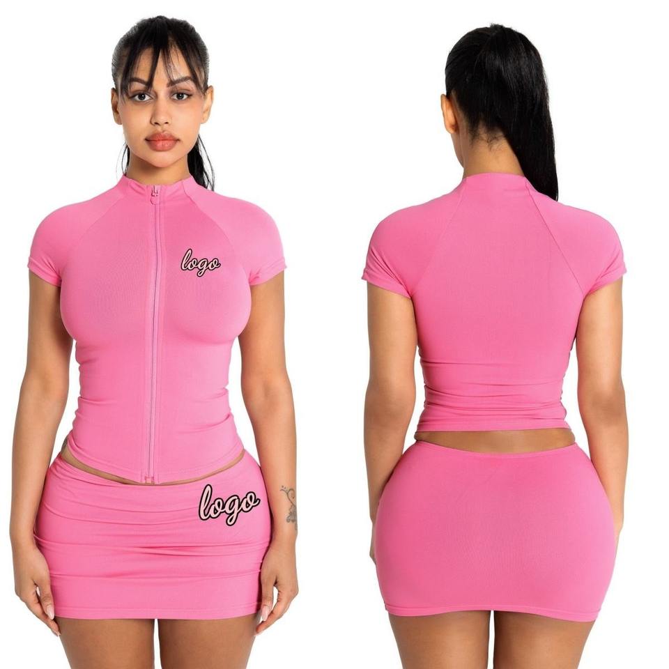 ชุดวอร์ม2ชิ้นสำหรับผู้หญิงชุดสั้นมีซิปแต่งโลโก้ได้ตามต้องการสำหรับผู้หญิงชุดออกกำลังกาย