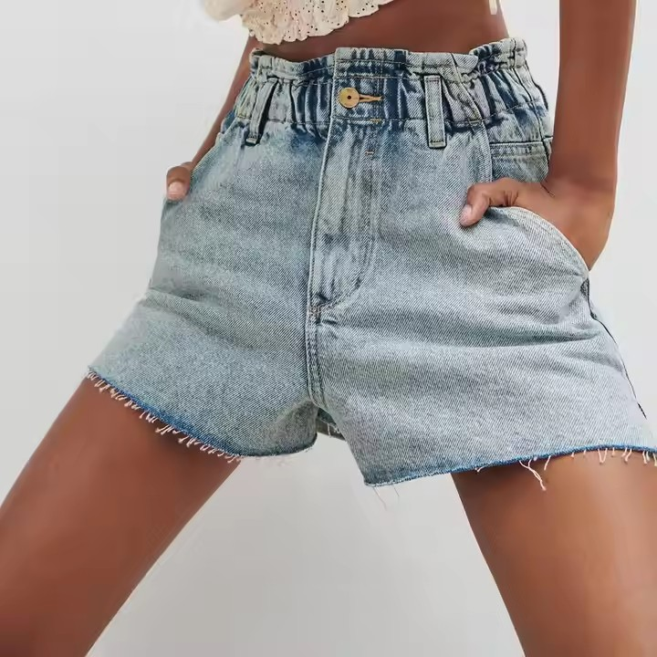 ถุงกระดาษลำลองสำหรับผู้หญิงกางเกงขาสั้นผ้ายีนส์ระบายอากาศได้ดีทำจากฟอยล์แข็งเคลือบโลโก้ใหม่ฤดูร้อน