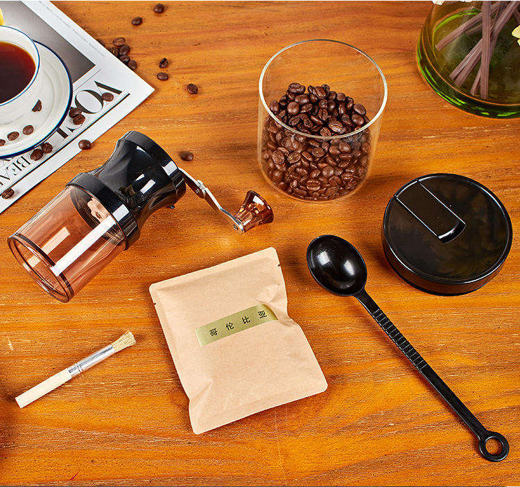 เครื่องบดกาแฟอะคริลิกสำหรับบ้านปรับได้การตั้งค่าได้เมล็ดกาแฟดีไซน์ใหม่ออกแบบด้วยมือโลโก้ได้ตามต้องการ