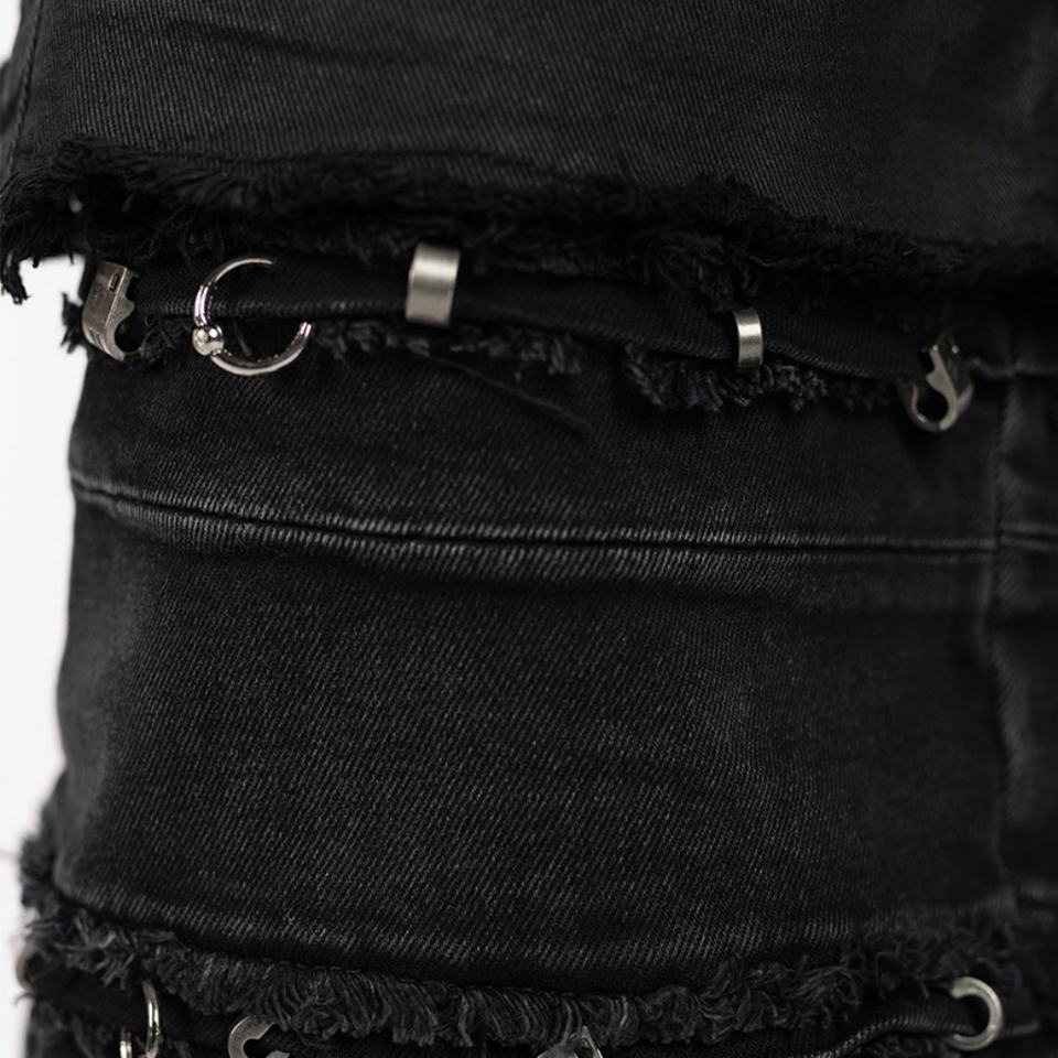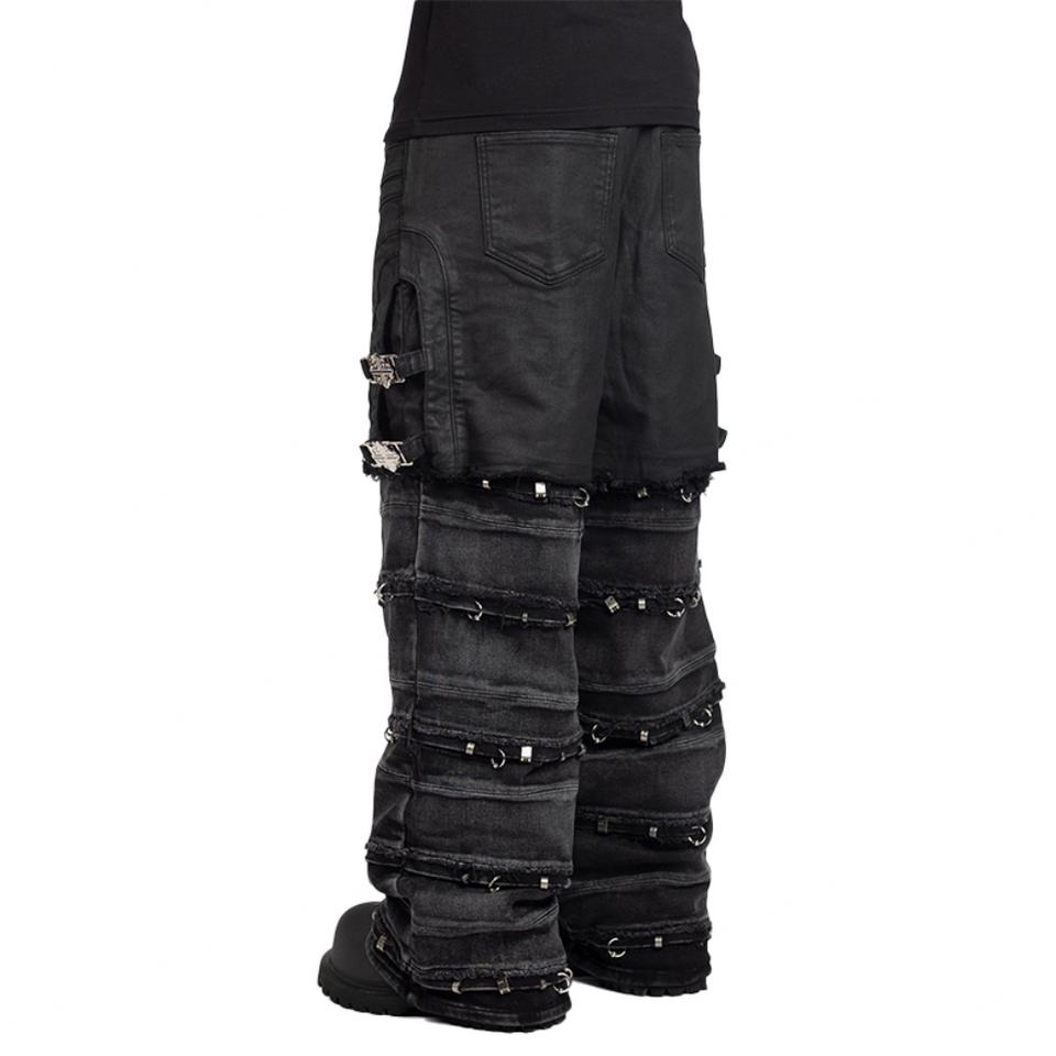 กางเกงยีนส์ทรงคาร์โก้แบบถอดได้ แต่งโลโก้ตามสั่ง แฟชั่นใหม่สำหรับผู้ชาย แต่งโลหะสไตล์ Y2K ทรงหลวม