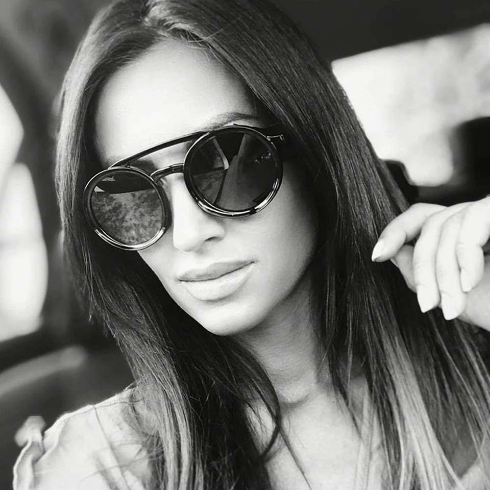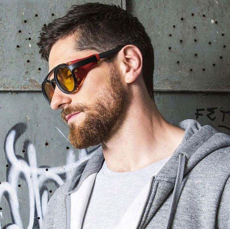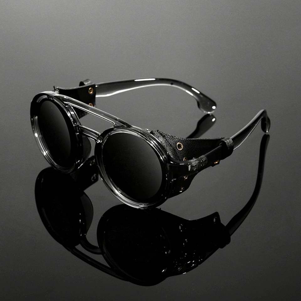 แว่นกันแดดทรงกลมสไตล์วินเทจหนังแท้สำหรับผู้ชาย โลโก้แบบกำหนดเอง ป้องกันรังสียูวี 400 แว่นกันแดดสไตล์สตีมพังก์สำหรับผู้ชายและผู้หญิง