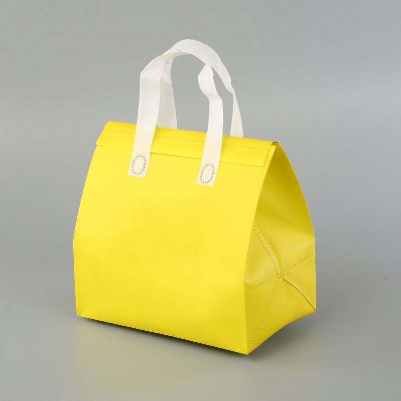 กระเป๋าผ้าสปันบอนด์พิมพ์โลโก้ตามสั่ง สำหรับโฆษณาอาหารจานด่วน แบบเคลือบลามิเนต สำหรับใส่กลับบ้านหรือปิกนิก พร้อมจัดส่งรวดเร็ว