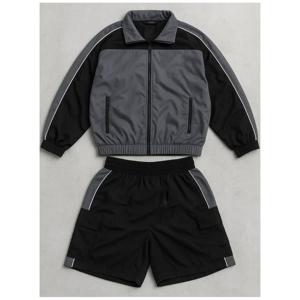เสื้อโปโลไนลอนโพลีเอสเตอร์โลโก้แบบกำหนดเอง ชุดเซ็ต 2 ชิ้น กางเกงขาสั้นคาร์โก้ เสื้อแจ็คเก็ตกันลม ชุดวอร์มผู้ชาย เสื้อยืด ชุดเซ็ตขาสั้น ชุดแทรคสูทผู้ชาย
