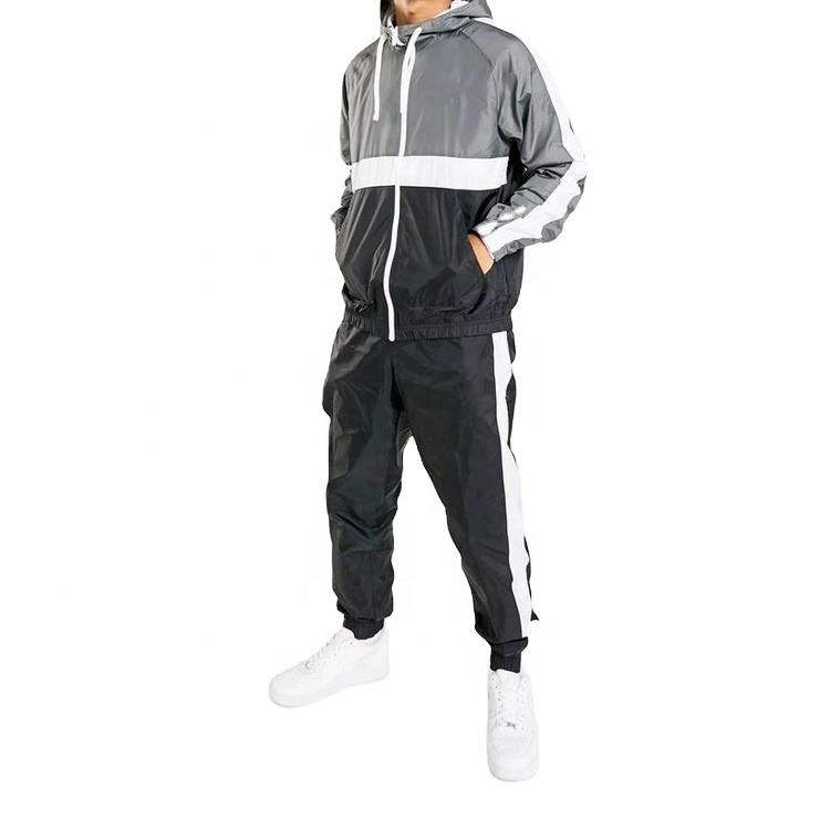 ชุดวอร์มไนลอนพิมพ์โลโก้ตามสั่ง เสื้อแจ็คเก็ตระบายอากาศ ชุดวอร์มสองชิ้นสำหรับผู้ชาย ชุดวอร์มแบบมีซิป รับผลิตแบบ OEM