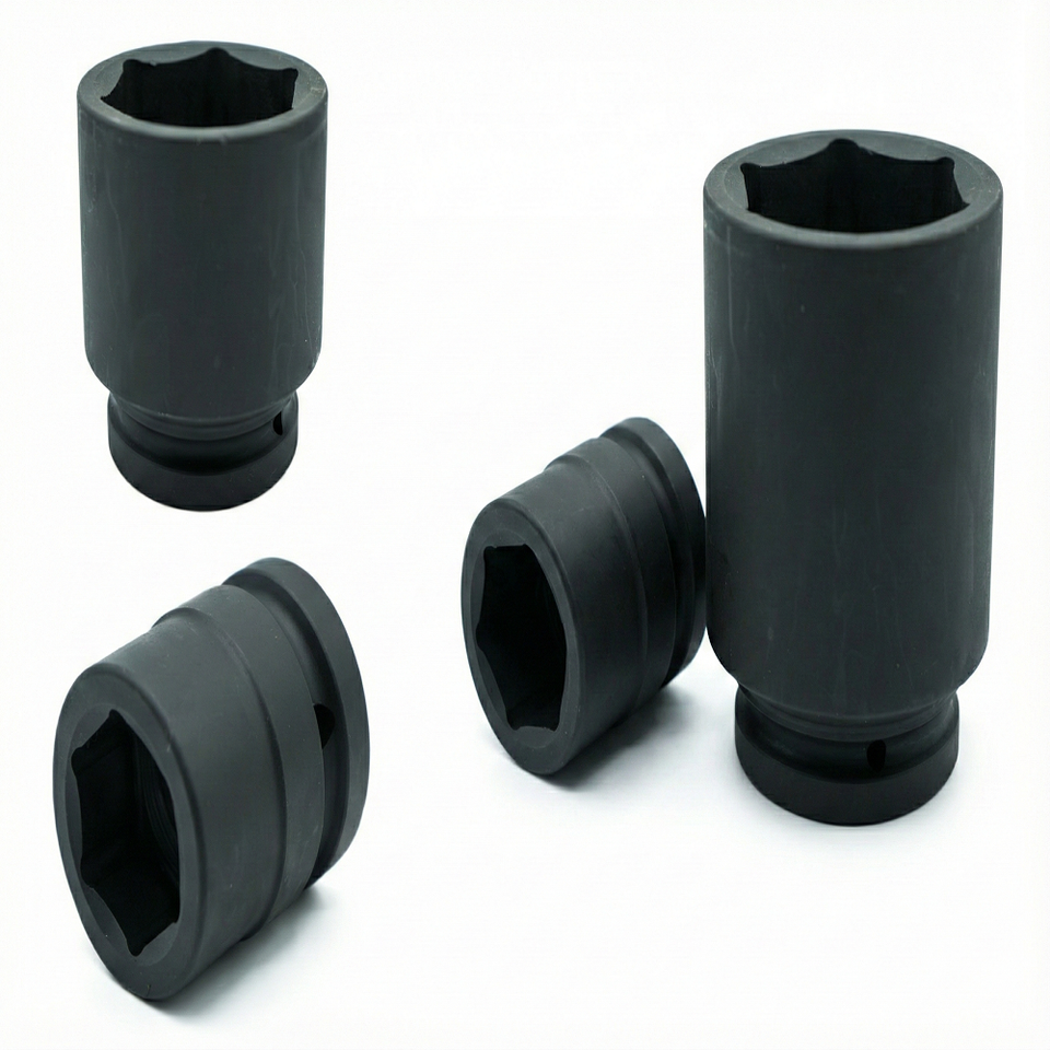 หัวบล็อกหกเหลี่ยมแบบกระแทกขนาด 1 นิ้ว ผลิตตามสั่ง (OEM) พร้อมโลโก้ วัสดุ Cr-Mo ขนาด 17-115 มม. สำหรับเครื่องจักรกลหนัก