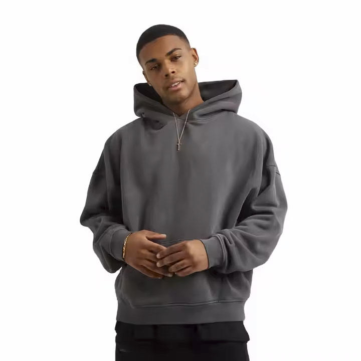 เสื้อฮู้ดดี้โอเวอร์ไซส์แบบเรียบ ปักโลโก้ตามสั่ง ออกแบบ OEM สำหรับผู้ชาย ผ้าฟลีซหนานุ่ม ระบายอากาศได้ดี เป็นมิตรต่อสิ่งแวดล้อม เหมาะสำหรับฤดูหนาว