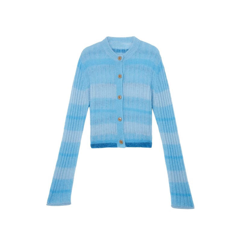 คาร์ดิแกนผ้าขนแกะสั้นลายทางสำหรับผู้หญิงเสื้อสเวตเตอร์ถักแบบกระดุมแถวเดียวสำหรับฤดูใบไม้ผลิโลโก้ออกแบบได้ตามต้องการ