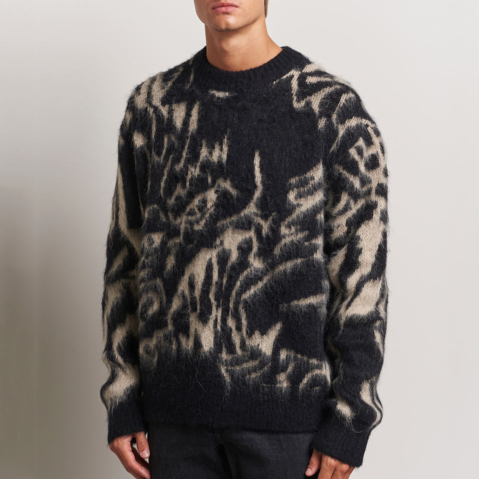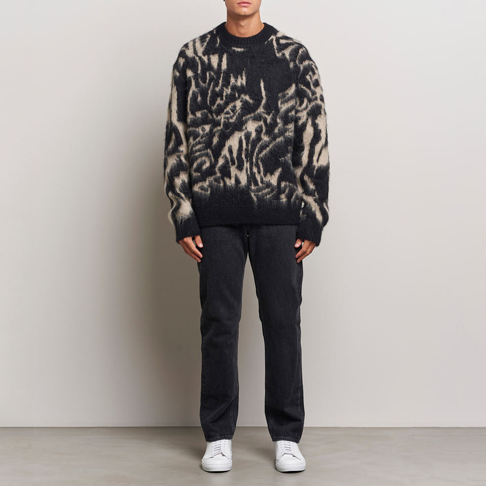 Custom Logo Oem Jacquard Mens Sweaters Distressed Effect Knitwear Pullover Crew Neck Knitted Jumper Winter Knit Men Sweaters