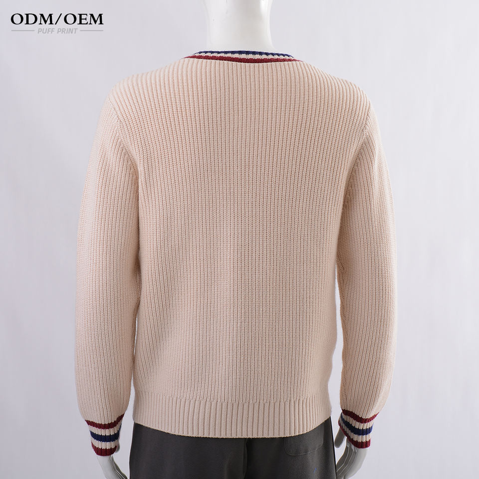 เสื้อสเวตเตอร์ผู้ชายแบบคอวี แขนยาว ถักนิตติ้ง แฟชั่นจั๊มเปอร์ เสื้อกันหนาวไหมพรม รับผลิตแบบ OEM และ ODM พร้อมโลโก้ตามสั่ง
