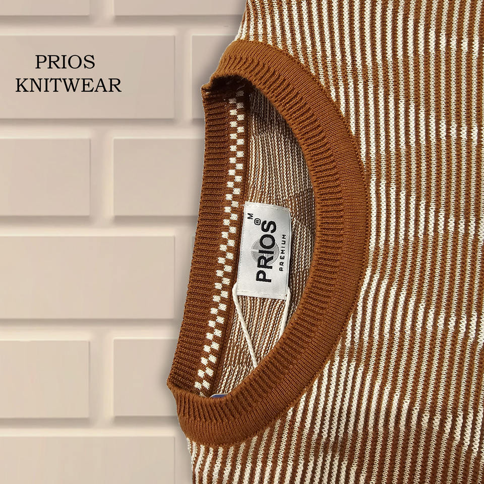 เสื้อสเวตเตอร์คอตตอนลายทางสำหรับผู้ชายเสื้อถักลายทางแขนสั้น OEM & ODM โลโก้ตามสั่ง