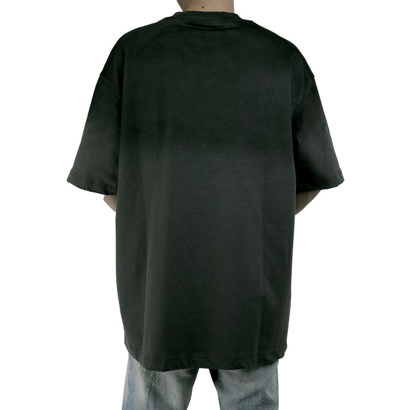 OEM & ODM เสื้อยืดผ้าฝ้าย100% พลอยเทียม320กรัมเสื้อยืดผู้ชายแบบไล่สีติดด้วยความร้อนโลโก้ตามสั่ง
