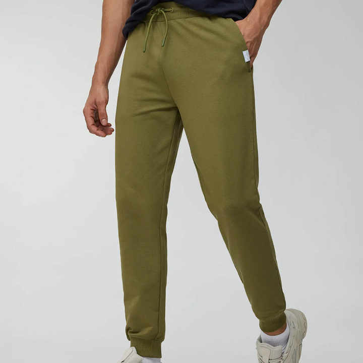 กางเกงจ็อกเกอร์ผู้ชายสีเขียวมะกอกพิมพ์โลโก้ตามสั่ง ผ้าคอตตอนผสม ล้างทำสี ระบายอากาศได้ดี กางเกงร่องผู้ชายมีกระเป๋า