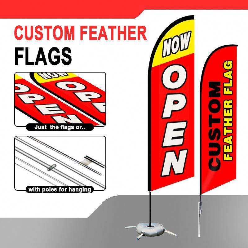 เสาธงขนนกสำหรับโฆษณาภายนอกอาคารพร้อมป้ายพิมพ์ลาย ธงขนนกพิมพ์ลายตามสั่ง