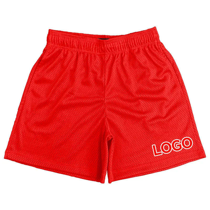 กางเกงขาสั้นบาสเก็ตบอลกลางแจ้งสำหรับผู้ชายผ้าฝ้ายระบายอากาศได้ดีสำหรับ100% ยิมฟิตเนสวิ่งตาข่ายสไตล์ลำลองปักโลโก้ได้ตามต้องการ