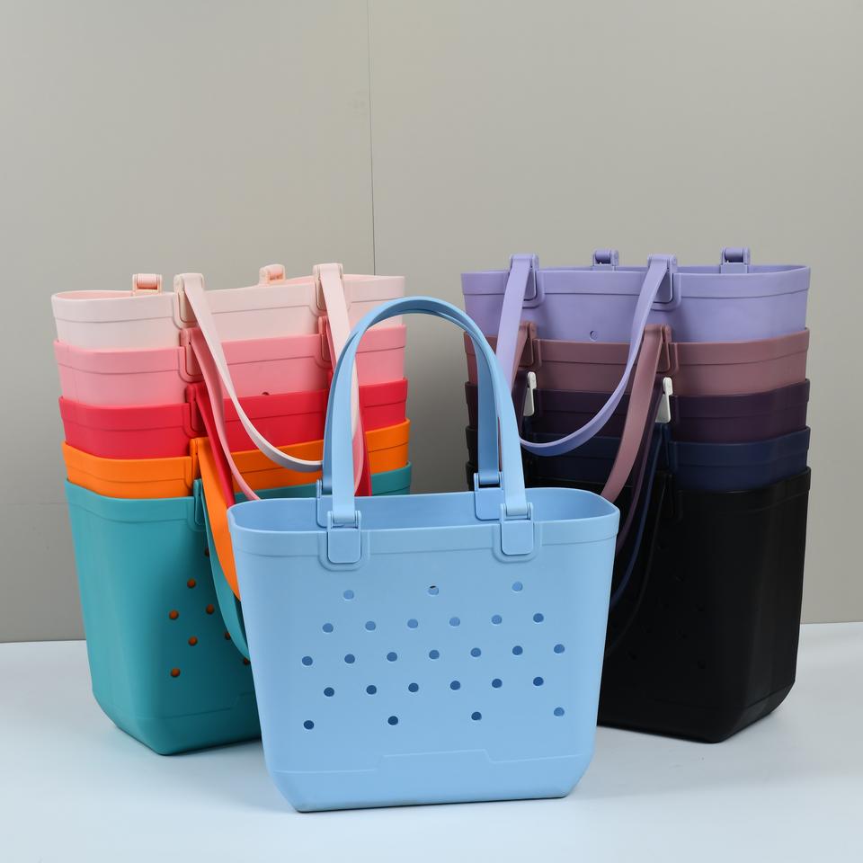 กระเป๋าหิ้วขนาดใหญ่ลายโลโก้แบบกำหนดเองสำหรับกิจกรรมกลางแจ้ง แฟชั่นแคมป์ปิ้ง กระเป๋าชายหาดยางอีวีเอ Simply Southern กระเป๋าชายหาดซิลิโคนอีวีเอ ดีไซน์เนอร์