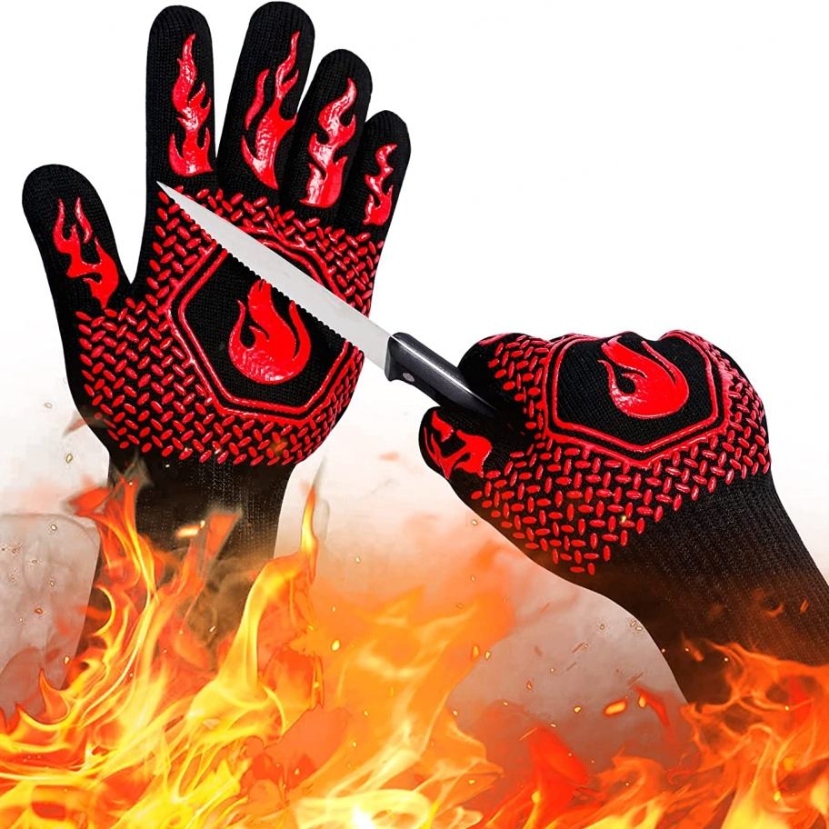 ถุงมือกันความร้อนสูงสำหรับงานกลางแจ้ง พิมพ์โลโก้ได้ ทนความร้อนสูงสุด 800 องศา ถุงมือซิลิโคนสำหรับเตาอบและบาร์บีคิว