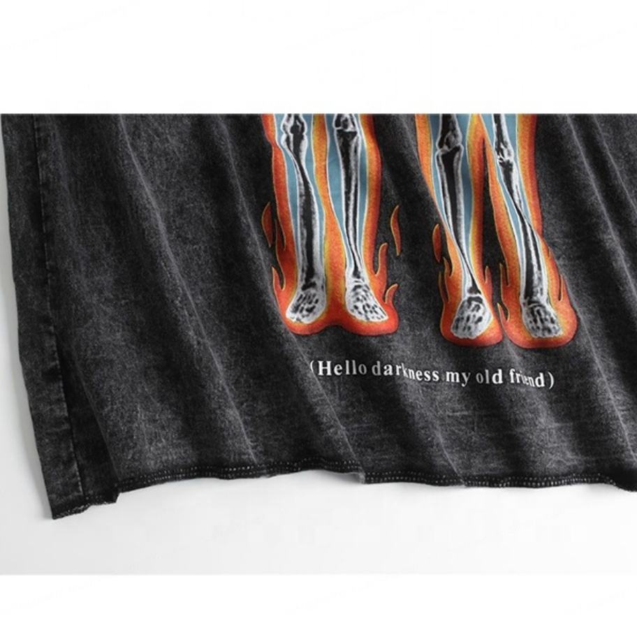 เสื้อยืดพิมพ์ลายสกรีนผ้าฝ้าย 100% ล้างสีแบบโอเวอร์ไซส์ พิมพ์โลโก้ตามสั่ง สไตล์ฮาราจูกุ วินเทจ เรโทร ลายหัวกะโหลกเปลวไฟ สำหรับผู้ชาย