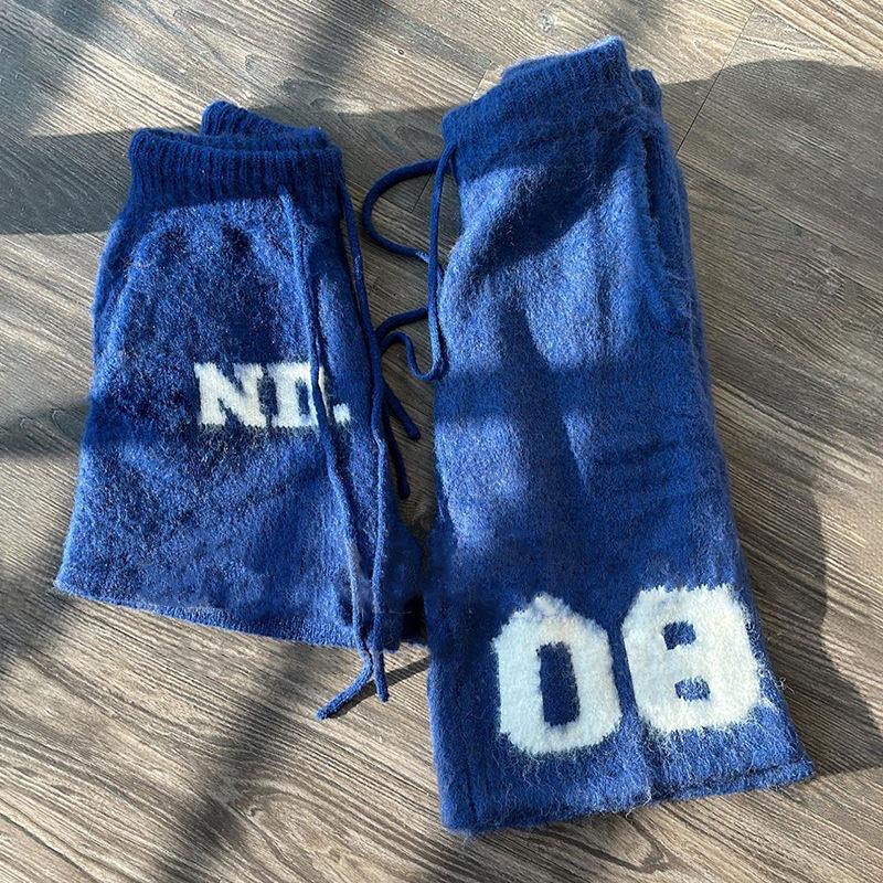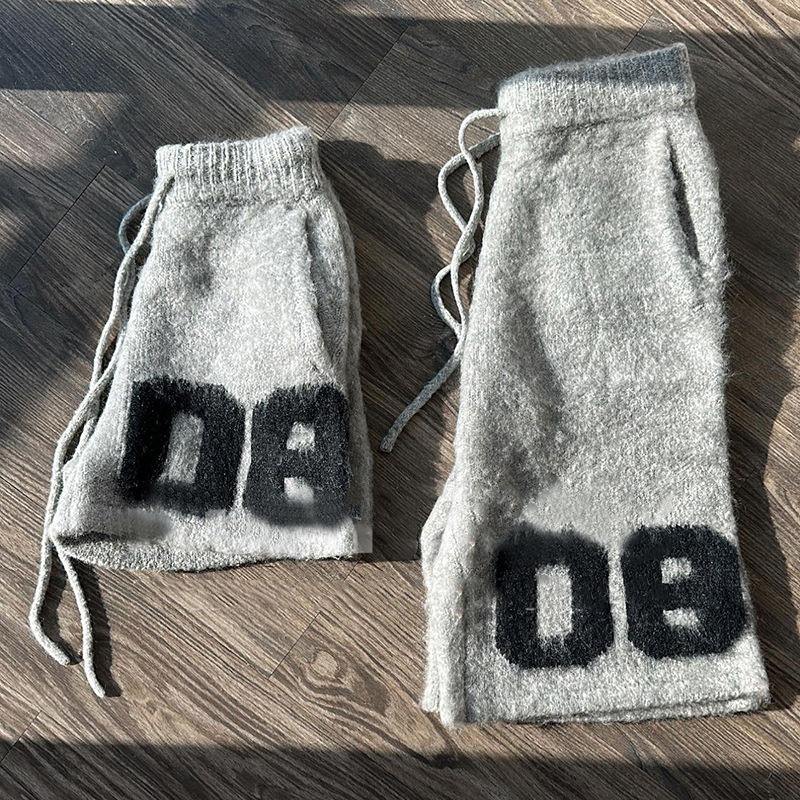 กางเกงสตรีทแวร์ทรงหลวมยาวคลุมเข่าพร้อมเชือกผูกเอว พิมพ์โลโก้ตามสั่ง เนื้อผ้านุ่มฟูถักทอคุณภาพสูงจากขนแพะโมแฮร์ สำหรับผู้ชาย