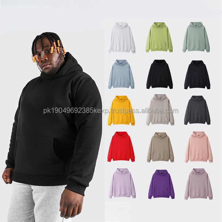 เสื้อฮู้ดดี้ผ้าฟลีซโอเวอร์ไซส์สำหรับผู้ชาย ปักโลโก้ตามสั่ง สีพื้น สำหรับฤดูหนาว ระบายอากาศได้ดี ไซส์ใหญ่พิเศษ ไม่มีเชือกผูก