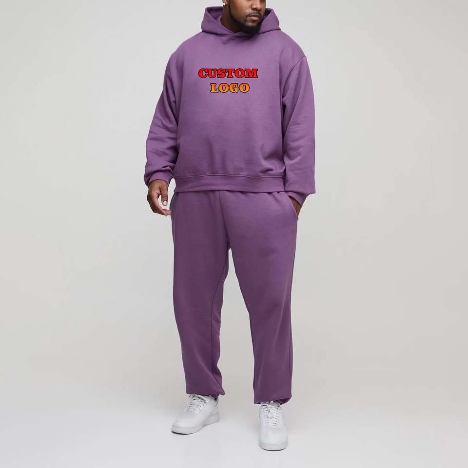 ชุดเซ็ตเสื้อฮู้ดดี้โอเวอร์ไซส์มีฮู้ดลายโลโก้แบบวินเทจและกางเกงขายาว | ชุดวอร์มผ้าฟลีซเนื้อหนัก 100% ผ้าฝ้าย | เสื้อผ้าสตรีทแวร์แบบยูนิเซ็กซ์