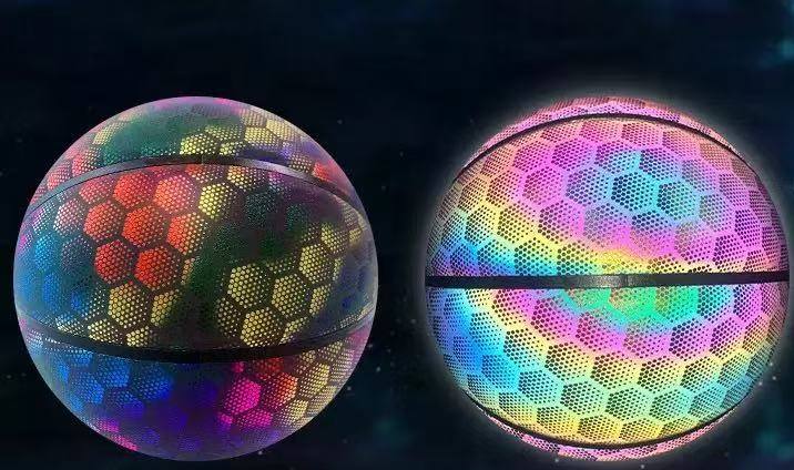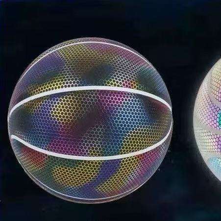 ลูกบาสเก็ตบอล PU ขนาดมาตรฐาน 7 สำหรับเล่นกลางแจ้ง เรืองแสงในที่มืด สะท้อนแสงโฮโลแกรม พร้อมโลโก้สั่งทำพิเศษ