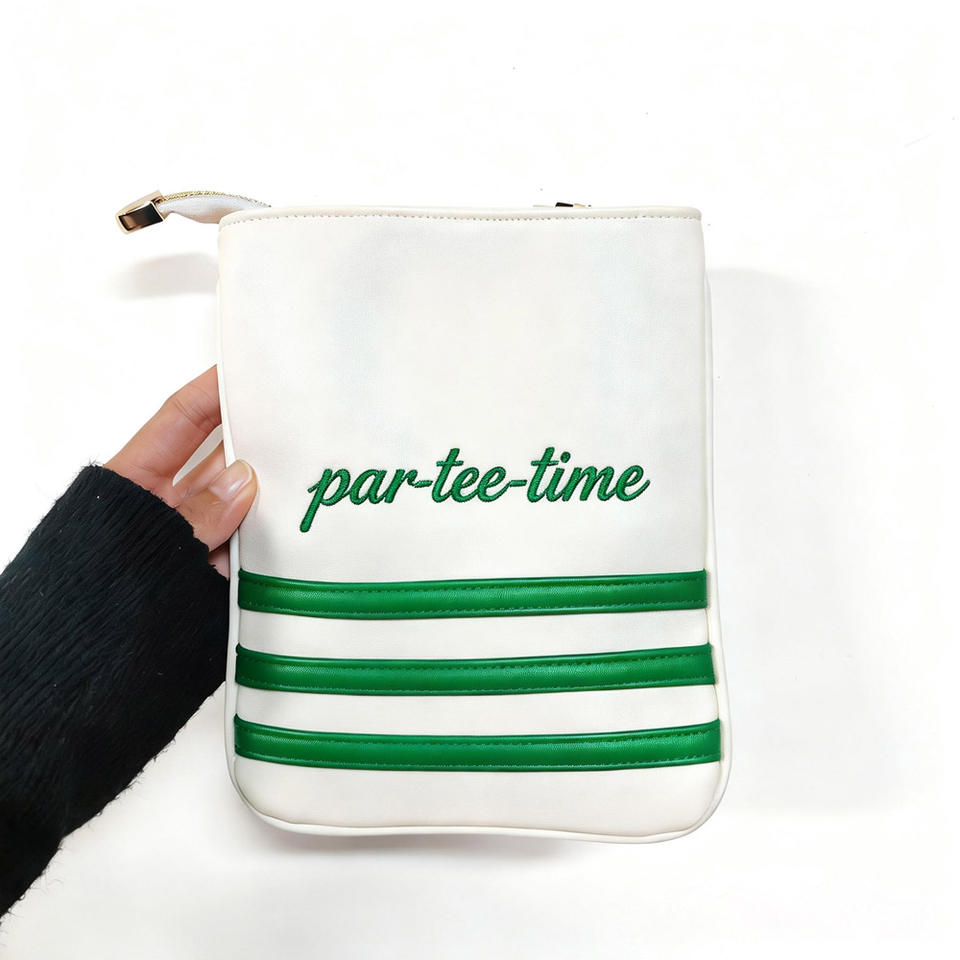 กระเป๋าใส่ทีกอล์ฟหนัง PU พร้อมโลโก้สั่งทำ กระเป๋าอุปกรณ์กอล์ฟสีขาว พร้อมช่องใส่ของมีค่าแบบมีซิป สำหรับใส่ทีกอล์ฟและลูกกอล์ฟ รุ่น C-G-B-3