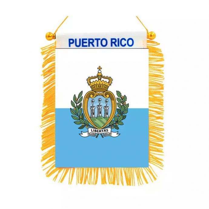 ธงสามเหลี่ยมปูเอร์โตริโกพิมพ์ลายดิจิทัลพร้อมโลโก้สั่งทำพิเศษ สำหรับติดกระจกมองหลังรถยนต์และตกแต่งบ้าน
