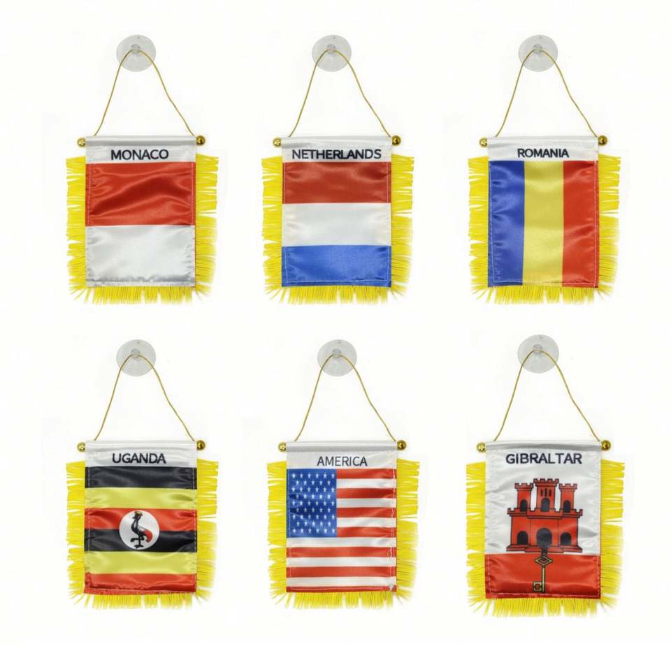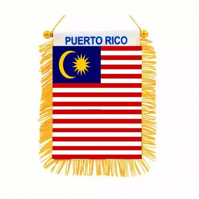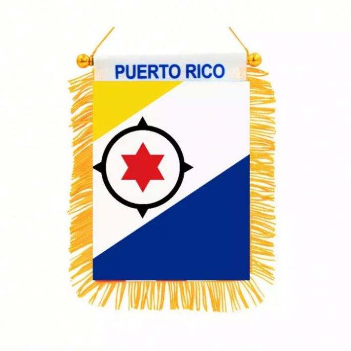ธงสามเหลี่ยมปูเอร์โตริโกพิมพ์ลายดิจิทัลพร้อมโลโก้สั่งทำพิเศษ สำหรับติดกระจกมองหลังรถยนต์และตกแต่งบ้าน