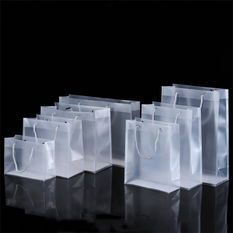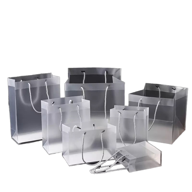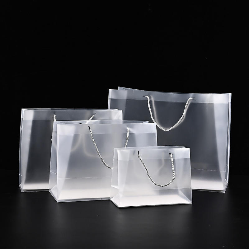 กระเป๋าโท้ทพีพีแบบกันน้ำพิมพ์โลโก้ตามสั่ง พร้อมหูหิ้วแบบยาวสำหรับบรรจุภัณฑ์เสื้อผ้าและของขวัญ