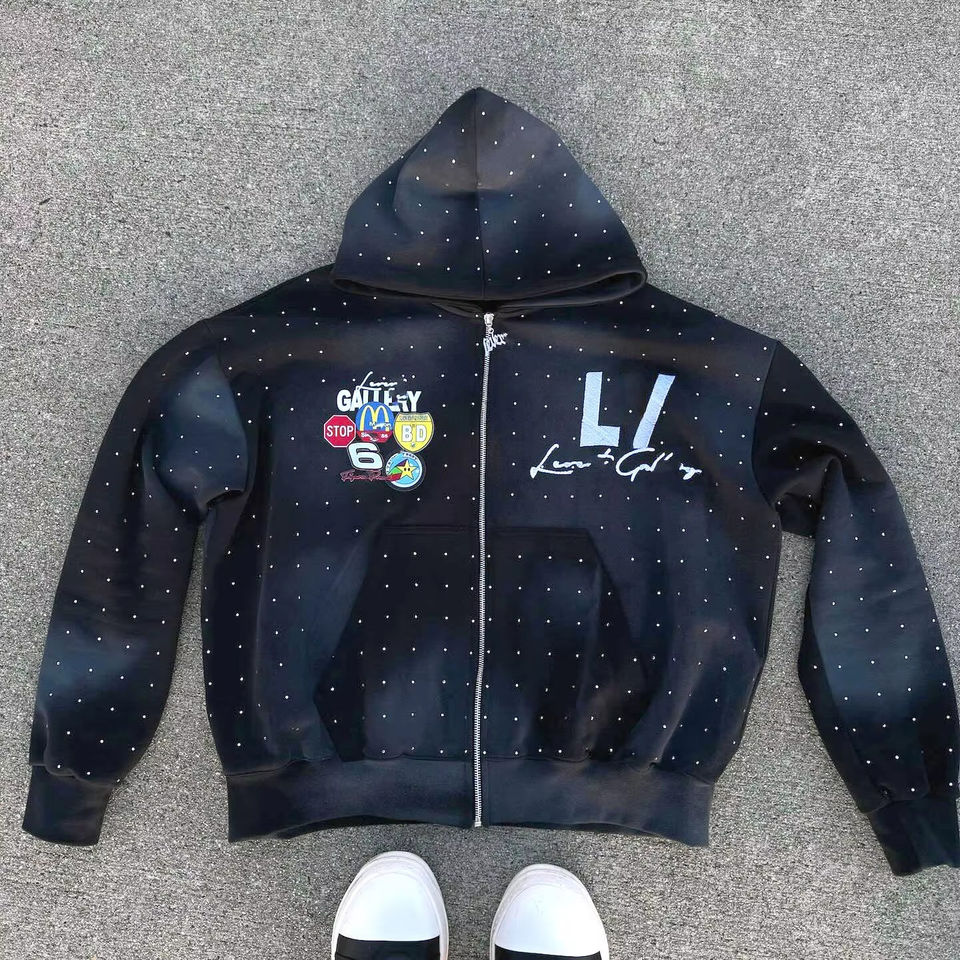เสื้อมีฮู้ดผ้าเกล็ดปลาผ้าคอตตอนผ้าเกล็ดปลาแบบหลวมเสื้อครอปทรงหลวมเย็บปักโลโก้ได้ตามต้องการ