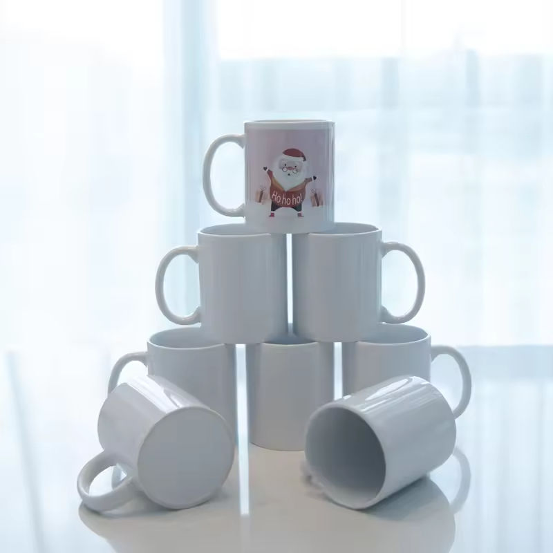 แก้วกาแฟเซรามิกสีขาวขนาด 11 ออนซ์ พร้อมหูจับ สำหรับพิมพ์ลายโลโก้ตามสั่ง เหมาะสำหรับของขวัญส่งเสริมการขาย