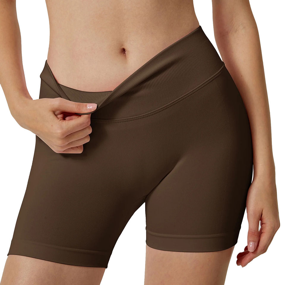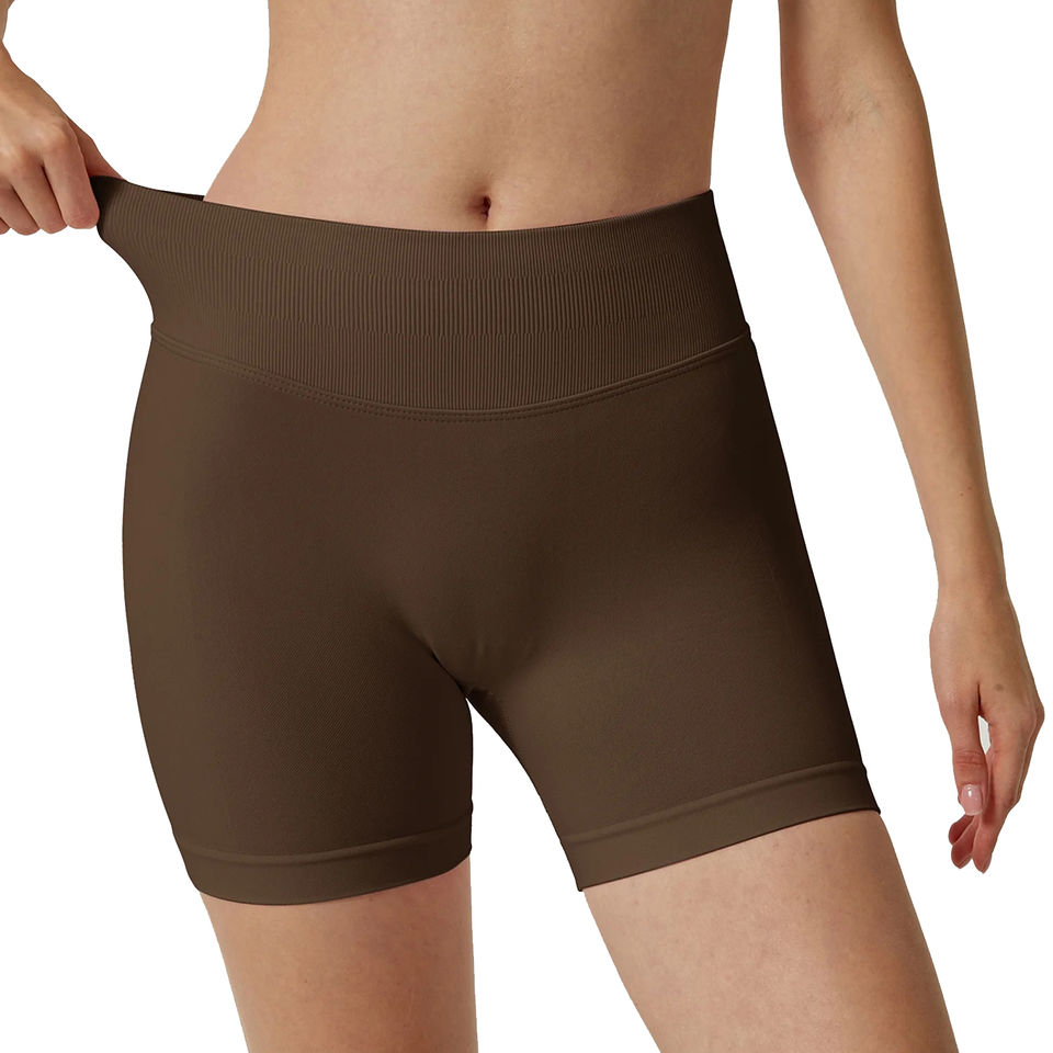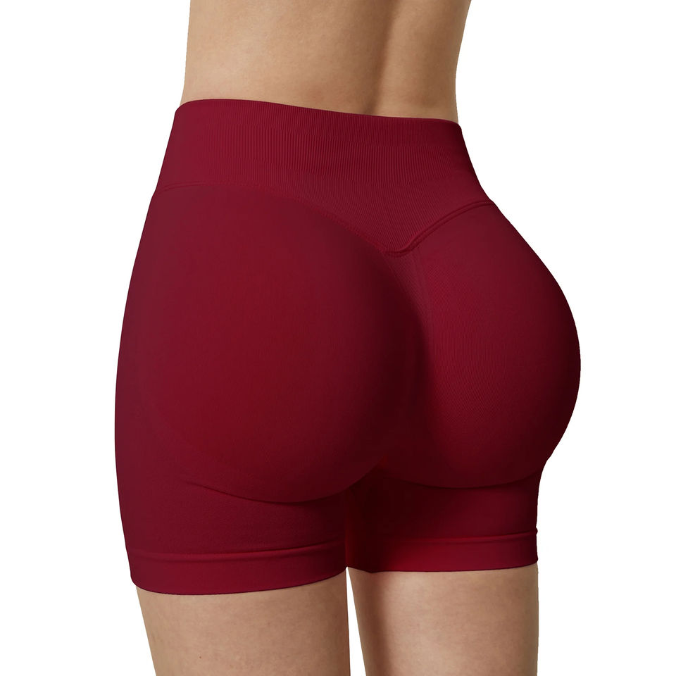 กางเกงขาสั้นออกกำลังกายเอวสูงผ้ายืดสแปนเด็กซ์/ไนลอนเนื้อแน่น 220 กรัม แบบกลับด้านได้ พิมพ์โลโก้ตามสั่ง สีพีช ทรงรัดก้น สำหรับฟิตเนส โยคะ และกีฬาต่างๆ