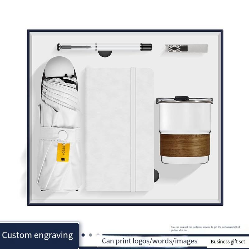 ชุดของขวัญสำนักงานธุรกิจแบบกำหนดเองพร้อมโลโก้ส่วนตัว สมุดโน้ตสำหรับผู้ชาย ของขวัญองค์กร ร่ม ปากกา แก้วกาแฟ ชุดของขวัญไฟ