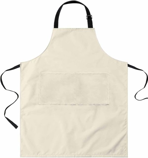 ผ้ากันเปื้อนแบบเรียบพร้อมโลโก้สั่งทำพิเศษ มีกระเป๋า 2 ช่อง สายคล้องคอปรับได้ ผ้ากันเปื้อนทำครัวคุณภาพสูง