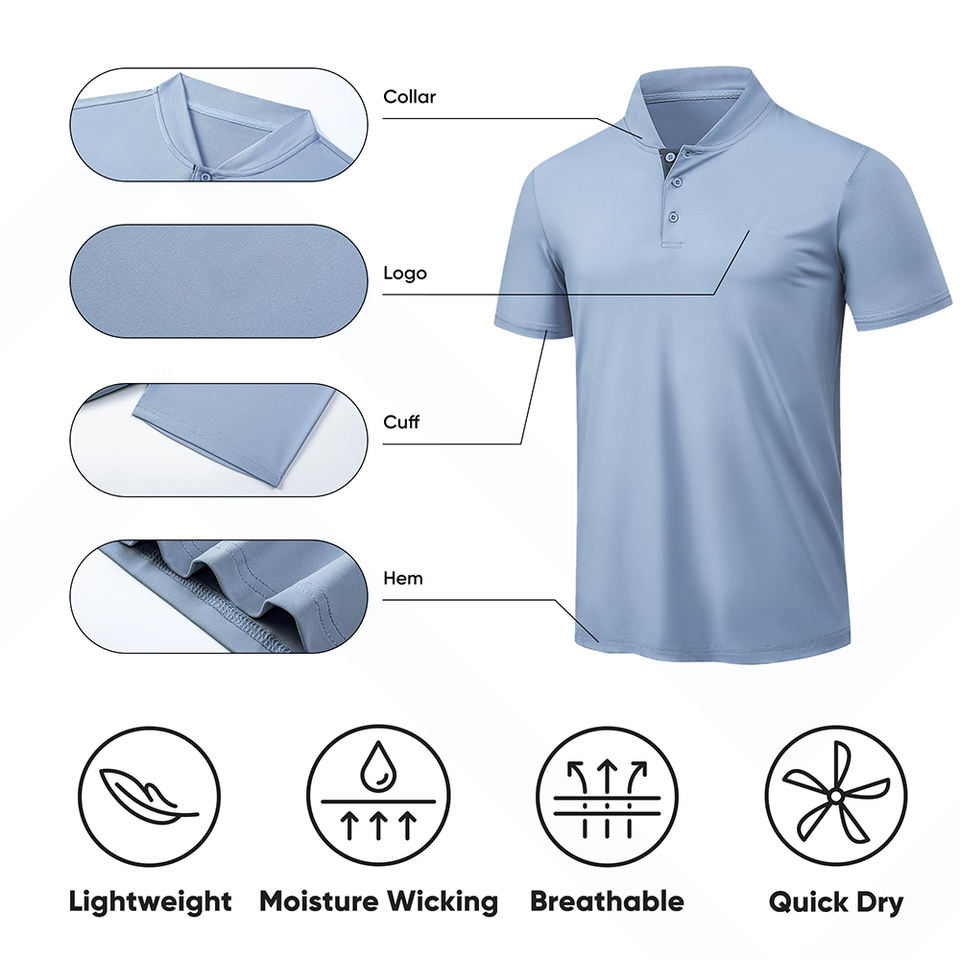 เสื้อยืดกอล์ฟแขนสั้นสำหรับผู้ชายเสื้อโปโลสำหรับผู้ชายผ้าโพลีเอสเตอร์100ล้วนรัดรูปแห้งเร็วผ้าย้อมสีพื้นออกแบบโลโก้ได้ตามต้องการ