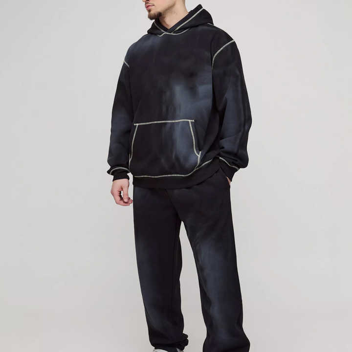 ชุดเซ็ตแทรคสูทผู้ชายไซส์ใหญ่ พิมพ์ลายสกรีน โลโก้สั่งทำได้ เสื้อฮู้ด กางเกงขาบาน ทรงโอเวอร์ไซส์ สไตล์สตรีทแวร์สำหรับฤดูหนาว